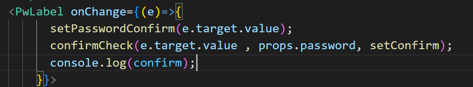 password가 바뀔 때도 이 함수를 실행해야 하는데 password 는 다른 컴포넌트에 있는 변수였다. 그래서 해당 컴포넌트에 가서 동일한 함수를 실행시키는 방법도 있겠지만 좀 번거로우니