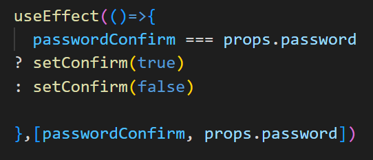 useEffect를 사용해서 password와 passwordConfirm 변수 두개에 의존성을 두기로 했다.