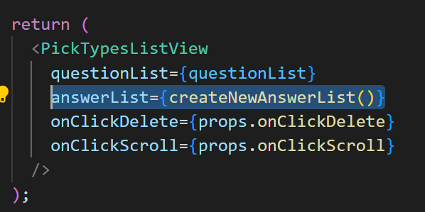이렇게 거른 answerList를 넘겨줘서 하위 컴포넌트에서 따로 조건을 판단(비즈니스 로직)할 필요가 없게 만들어줬다.