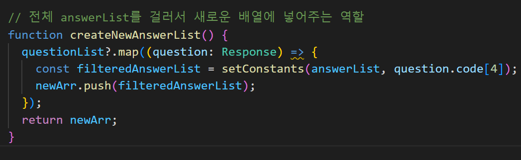 이렇게 거른 answerList를 넘겨줘서 하위 컴포넌트에서 따로 조건을 판단(비즈니스 로직)할 필요가 없게 만들어줬다.