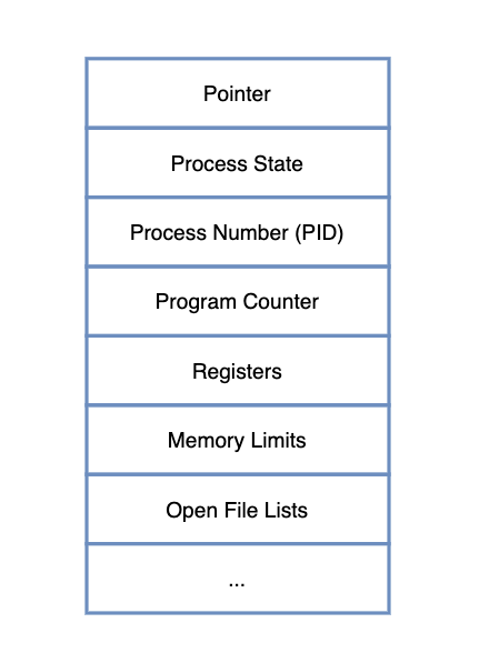 PCB에 저장된 정보를 보면 알 수 있듯이 프로세스를 관리하는 데 필요한 모든 중요한 정보를 포함하고 있다. 프로세스가 실행될 때 생성된다.